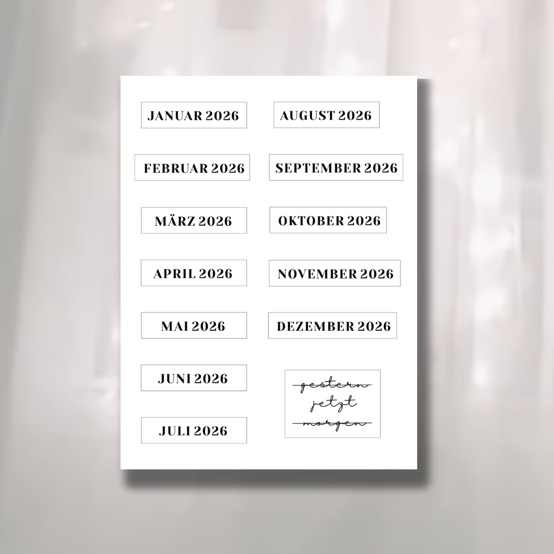 Transparente Monatssticker Jahr 2026 inkl. Versand